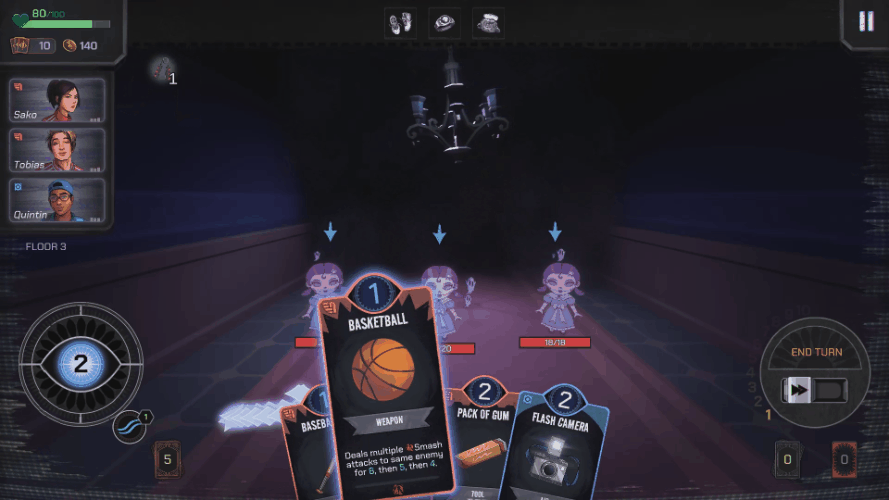 The deckbuilding in The Spirit Lift isn't so much strategic as it's considering your best of two choices when you happen upon cards in a room, making deckbuilding choices a bit more random and hoping you picked the right cards as you go level to level. The most strategy that happens when deckbuilding happens at the start of the game, when you pick out which 3 characters will be entering the Vexington Hotels to make the journey to the top. Those 3 characters each have different starting cards with different focuses that are heavily character archetype-based. Cards that you'll find in the hotel after that will usually fit the character archetypes you chose, so choose wisely at the start.